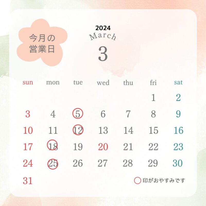 もし月曜日が祝日の場合は、翌火曜日がお休みとなります。
